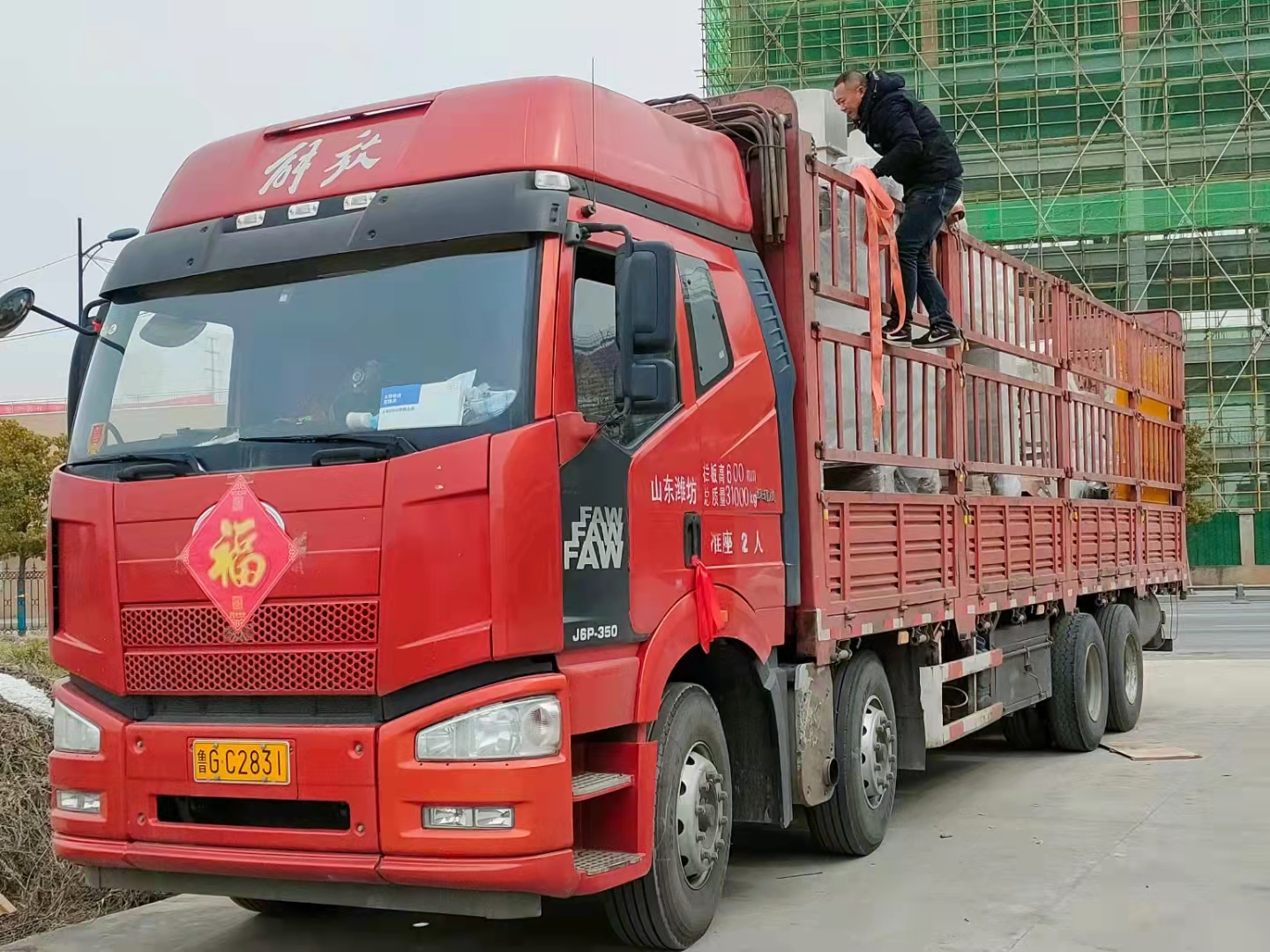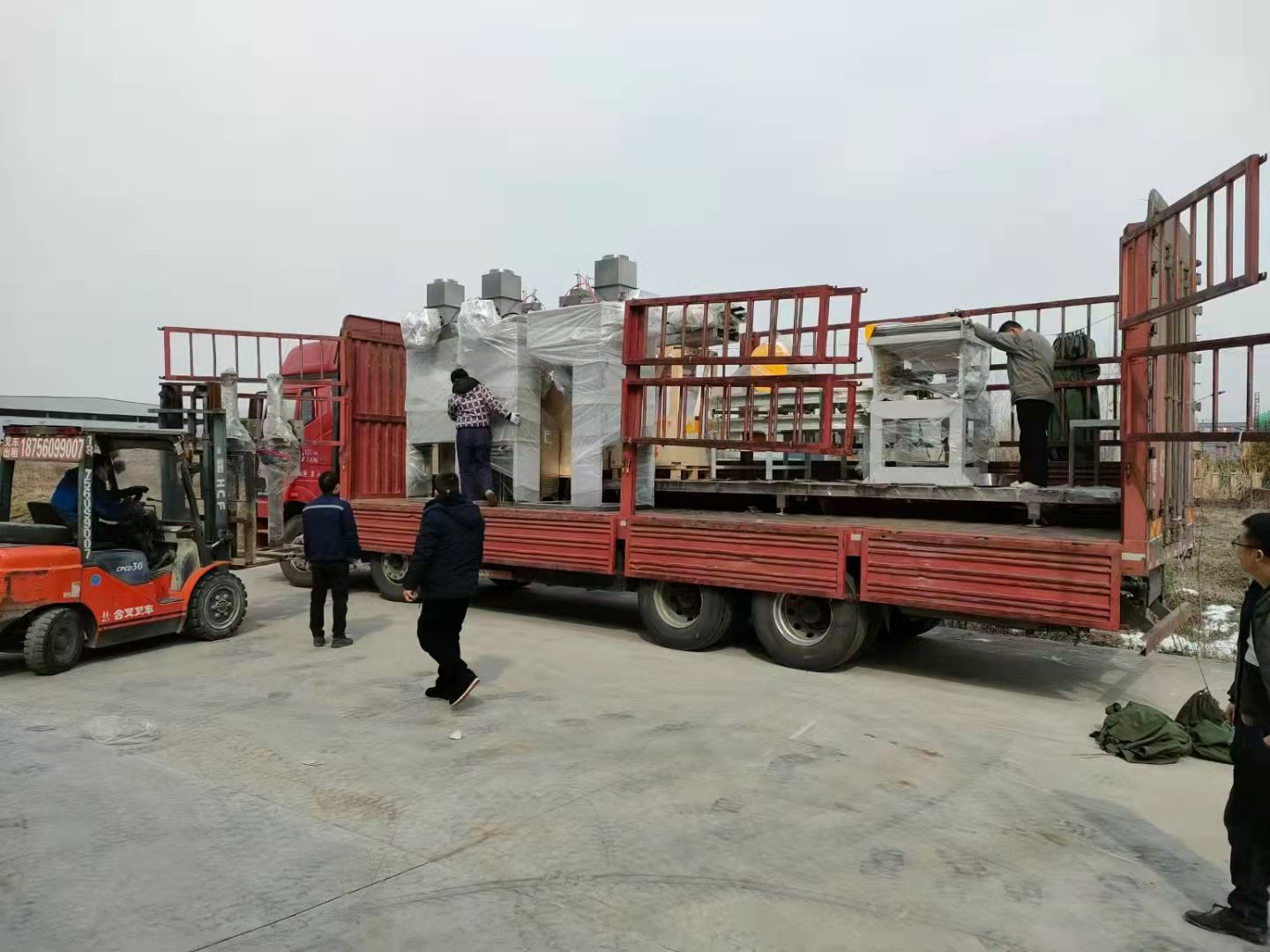 我司山東粉料自動(dòng)包裝碼垛系統發(fā)貨現場(chǎng)