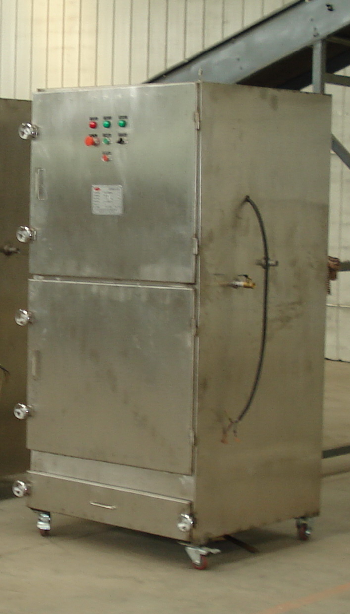 將機組放置獨立的除塵間,配置相應的風(fēng)管及吸塵罩與除塵器連接,插通電源,開(kāi)啟風(fēng)機鍵,含塵空氣從塵源經(jīng)吸塵罩、風(fēng)管、進(jìn)風(fēng)口進(jìn)入箱體,因氣流突然護張,流速驟然降低,大粒經(jīng)粉未在其自重的作用下以含塵空氣中分離而沉降至盛灰抽屜中,其余塵粒由于濾筒的篩濾、碰撞、鉤掛、靜電等作用,被滯留于濾芯外壁,凈化后的空氣由風(fēng)機經(jīng)出口排出。本機組凈化后的空氣可直接排放室內循環(huán)使用,無(wú)通風(fēng)熱量(冷量)損失。采用自動(dòng)脈沖清灰,清灰過(guò)程中無(wú)需停機。由于采用脈沖清灰,用戶(hù)需自備氣源。
