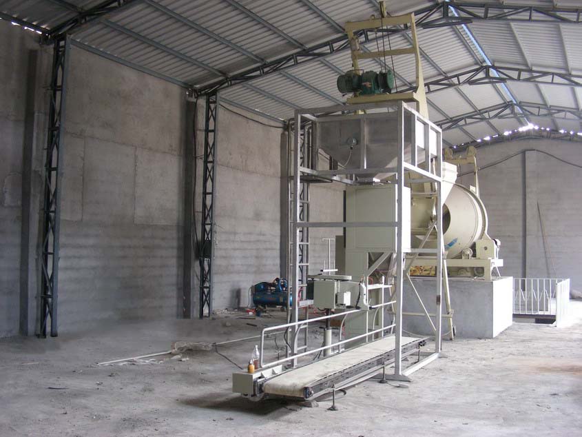本生產(chǎn)線(xiàn)主要包括:配料秤、分料器、爬升提升機、混合機、電子定量秤、縫包機、輸送機、系統總控箱等。