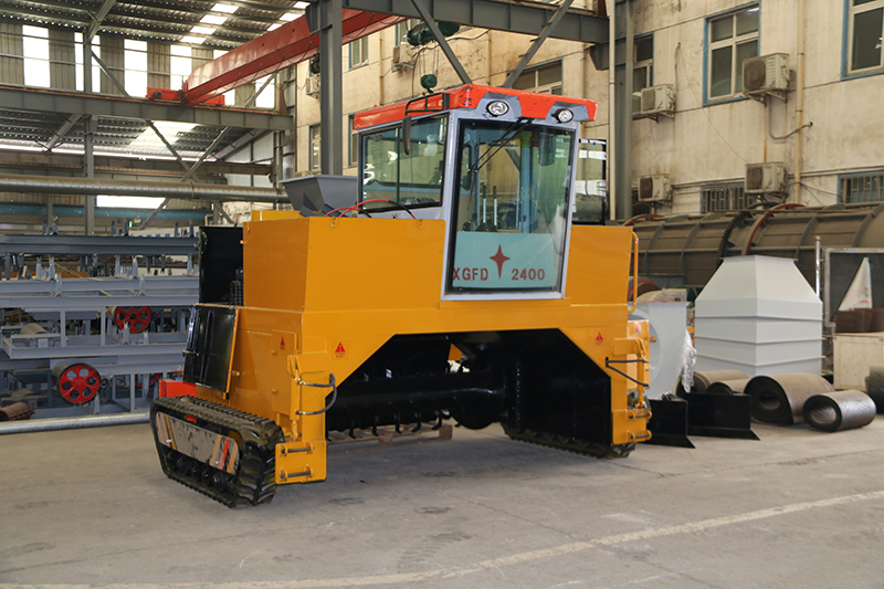 履帶式翻堆機采用履帶傳動(dòng)設計,一人即可操作。當它工作時(shí),履帶跨在條狀堆肥堆上,機架下端的刀軸旋轉對原料進(jìn)行混合和翻堆。操作不僅可以在露天區域完成,也可以在車(chē)間或者溫室完成。